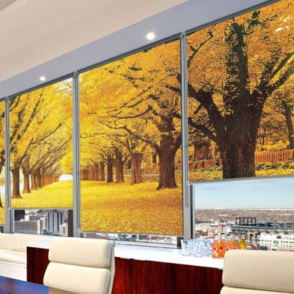 • Phòng khách: Chống nắng hiệu quả, tạo điểm nhấn nghệ thuật với hình ảnh thiên nhiên, phối hợp với sofa trắng hoặc bàn gỗ.
